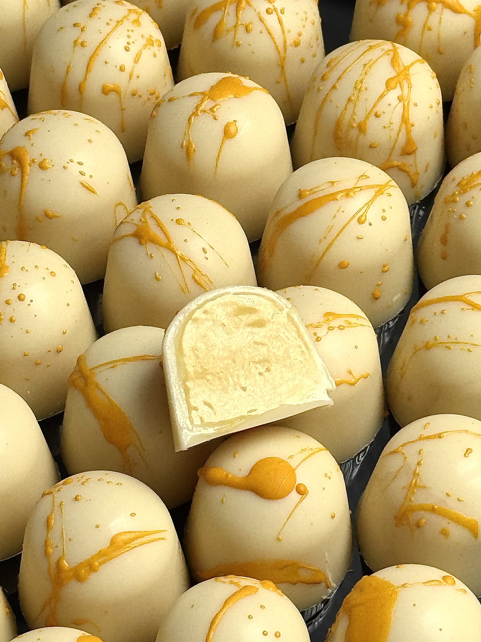 Ганаш на белом шоколаде с пюре манго и маракуйи. Корпус - белый шоколад
