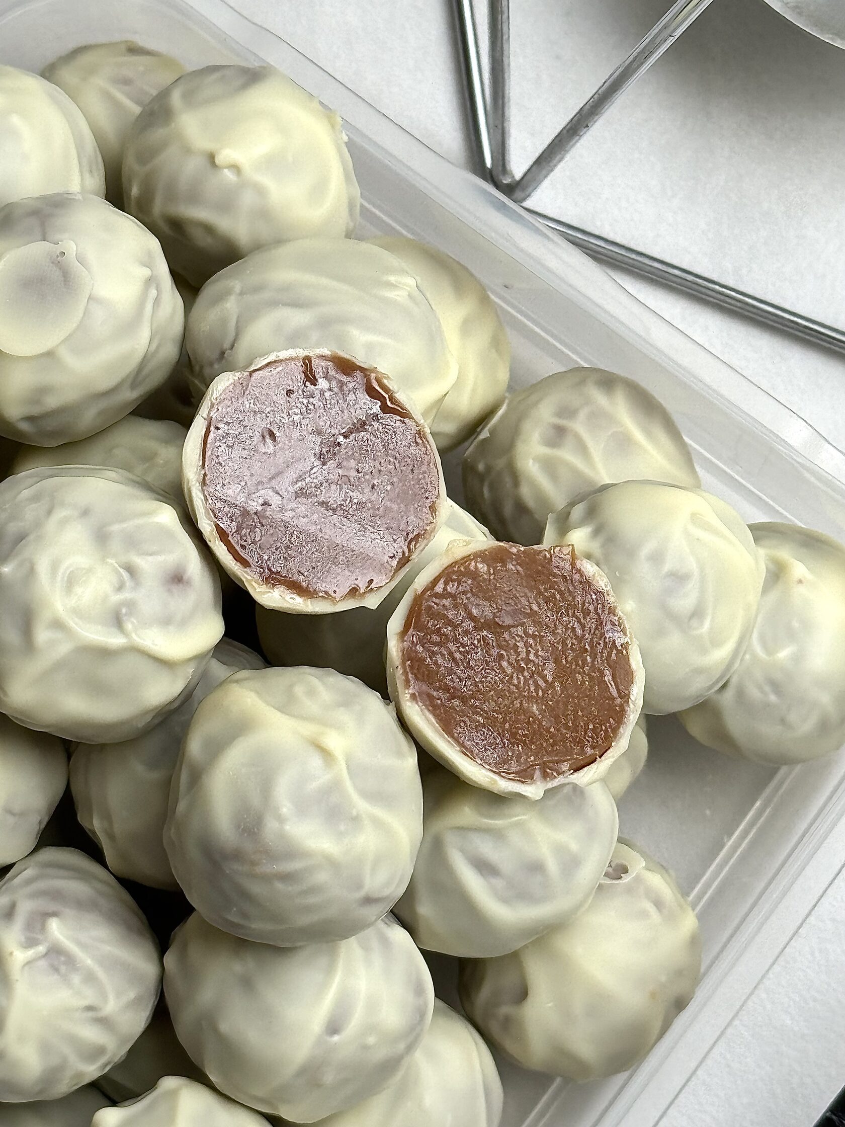 Ганаш кофейный на молочном бельгийском шоколаде. В обливке из белого шоколада