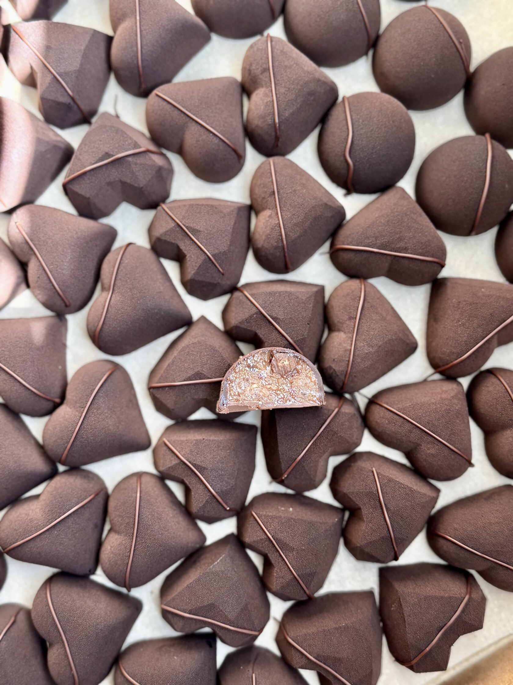 Основные принципы создания шоколадного велюра на корпусных конфетах и других шоколадных изделиях: